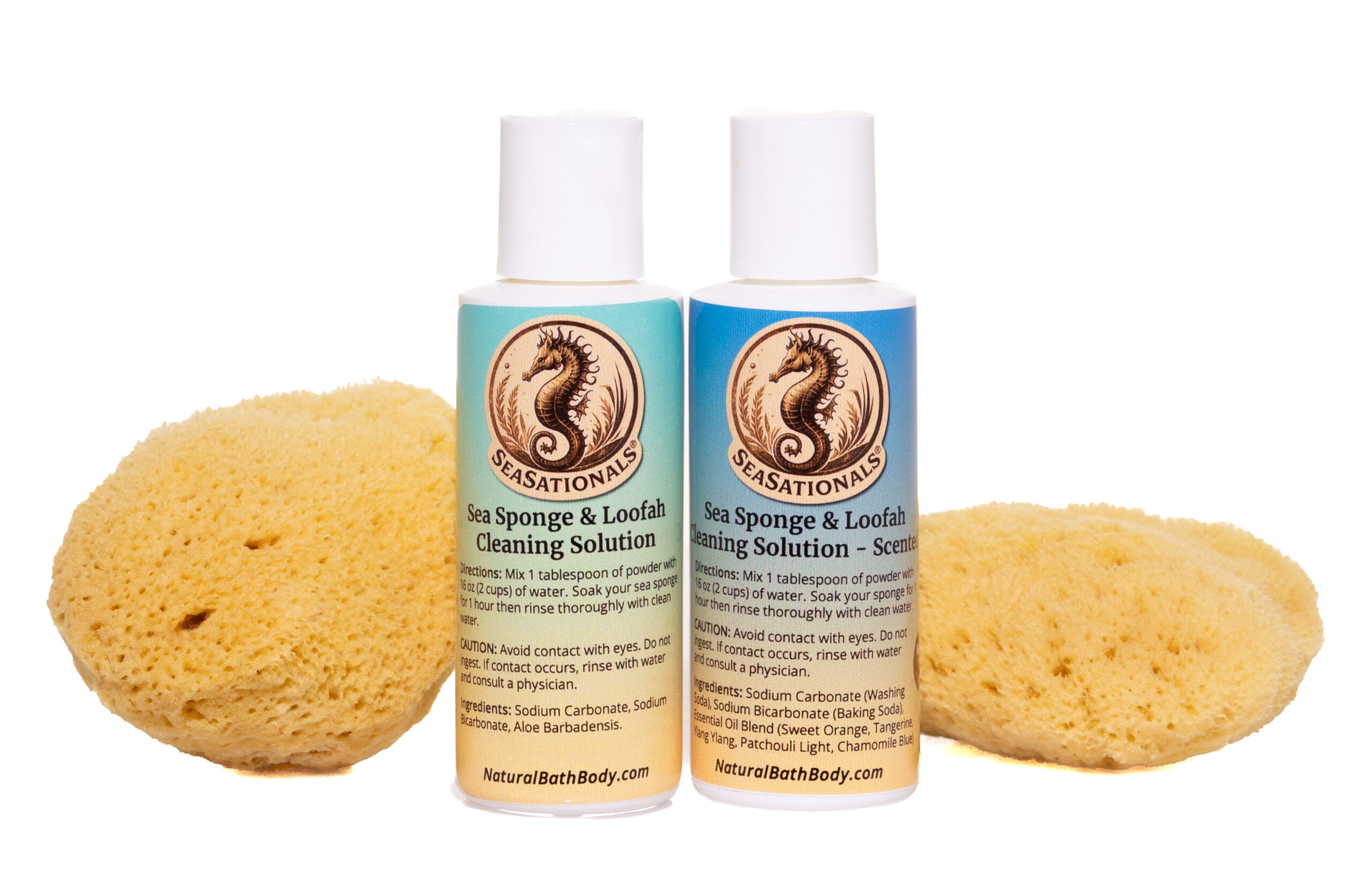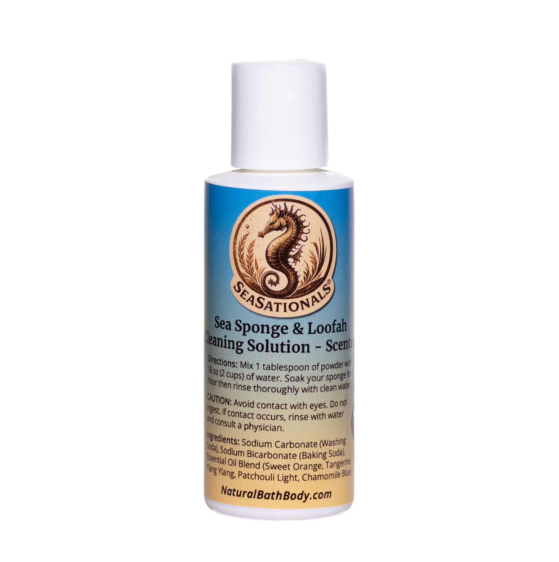 Easily mix 1 tablespoon of our specially formulated powder with 16 ounces (2 cups) of water and let your sea sponge or loofah soak for an hour! Then rinse and your Sea Sponge or Loofah is freshened up and ready to go! Makes your Sea Sponge or Loofah last longer and stay fresh!
